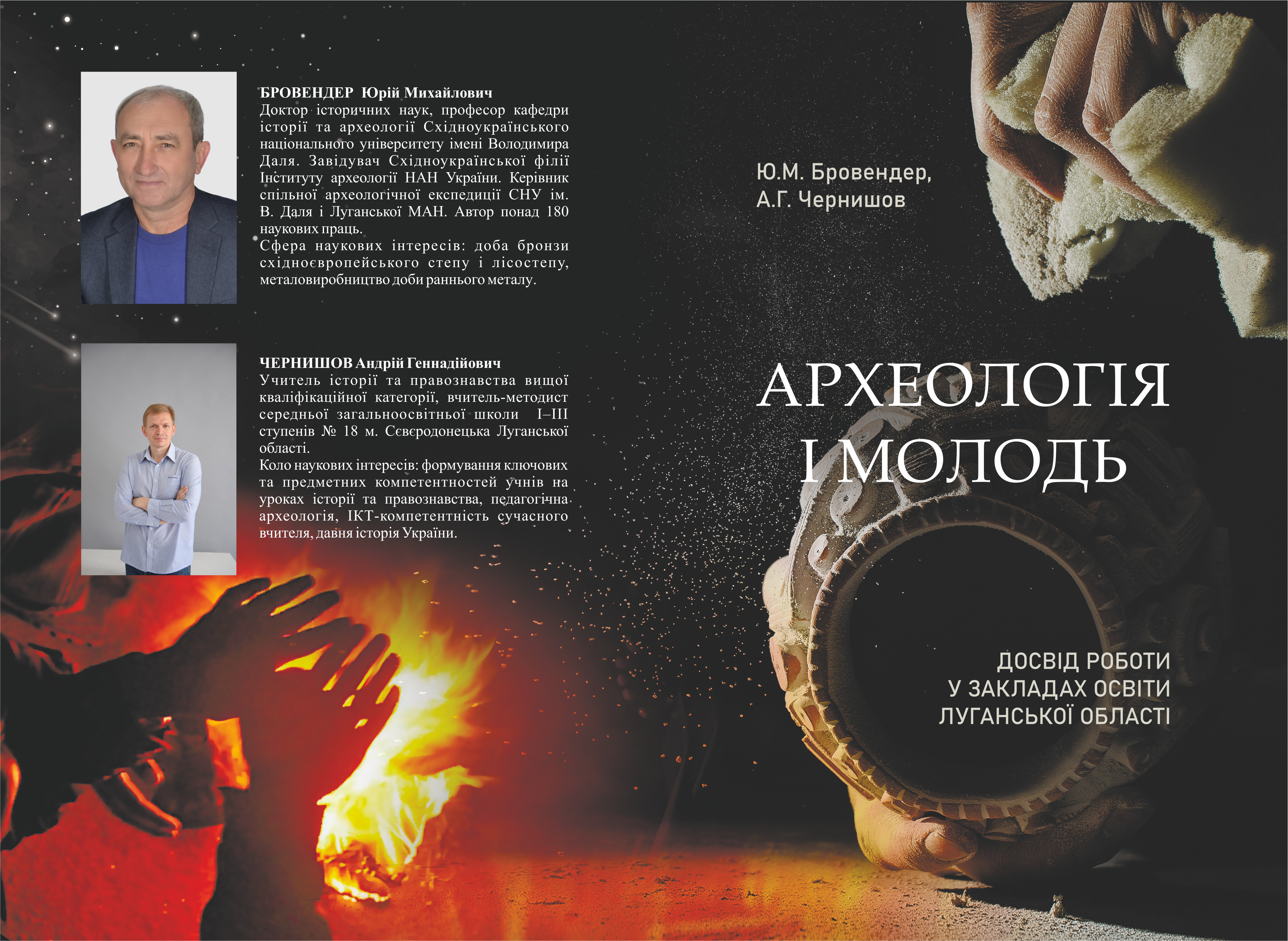 Бровендер Ю. М., Чернишов А. Г. Археологія і молодь: досвід роботи в закладах освіти Луганської області: монографія / наук. ред. Р. О. Литвиненко. Сєвєродонецьк : вид-во СНУ iм. В. Даля, 2021. 100 с.